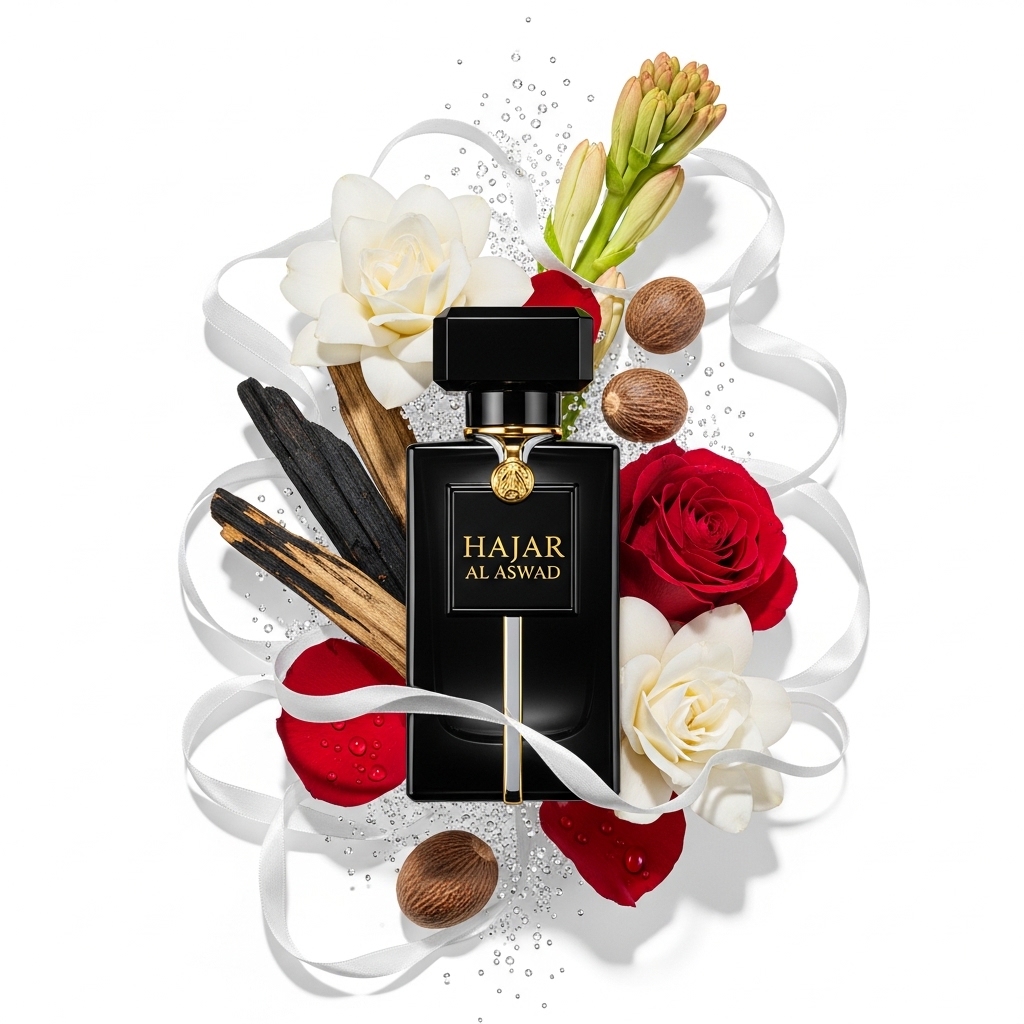 Hajar Al Aswad is a monumental olfactive masterpiece designed to embody the absolute prestige, mystery, and cultural depth of ancient Arabian luxury. It is a fragrance built on the perfect structural harmony between a lush, narcotic floral heart and a colossal, radiating woody-musk foundation that commands the space with sacred authority.