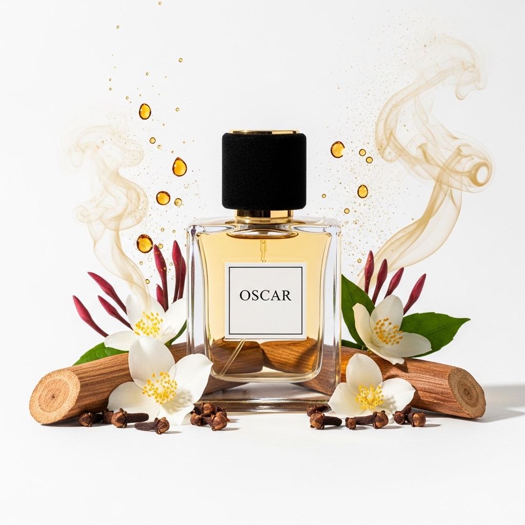 Oscar is a high-performance olfactive blueprint designed to deliver a monumental, sophisticated presence for premium incense and niche personal fragrances. It is a masterfully balanced construction that explores the captivating tension between indolic floralcy, warm spices, and a deep, radiant woody-musk foundation.