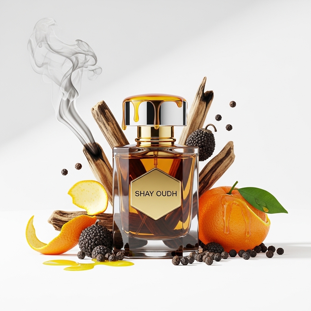 Shay Oudh is a masterclass in modern oriental perfumery, embodying the regal spirit of a caramelized, smoky oud. It is a fragrance built on the perfect structural tension between deep, resinous woodiness and an addictive, honeyed gourmand heart.